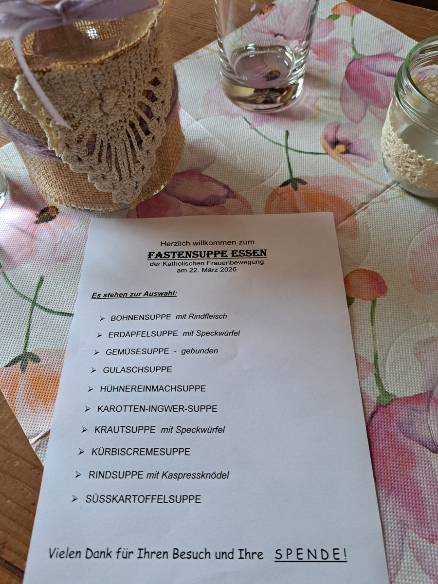 22. März 2026 - Diese Jahr bietet die Frauen der KATHOLISCHE FRAUENBEWEGUNG unserer Pfarre wieder zahlreiche Suppen im Pfarrhof an.