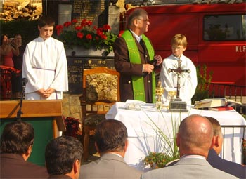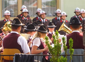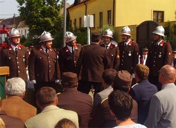 Patzmannsdorf und unser Feuerwehrkurat Mag. Franz Haslinger gestalteten die Messe. Einige Ehrungen von Feuerwehrmitgliedern, eine Ausstellung von alten Feuerwehrgeräten und der Frühschoppen des Musikverein