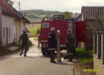6. Pflichtübung mit schwerem Atemschutz in der Kellergasse im Ort:
