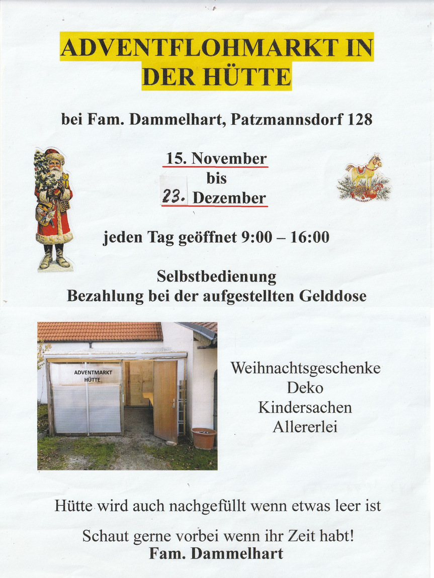 Adventflohmarkt in der Hütte - Patzmannsdorf Nr. 128, hintaus
