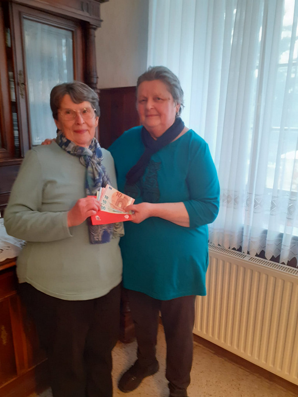 Johanna an Johanna. Von der Adventhütte wurden heute 140 € an die Pfarrkirche als Blumenspende übergeben. Frau Johanna Pisch hat die Spende übernommen. |