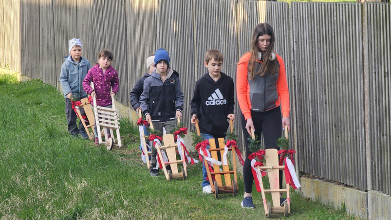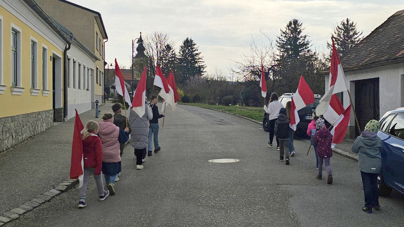 Fahnentragen der Kinder in der Fastenzeit: